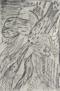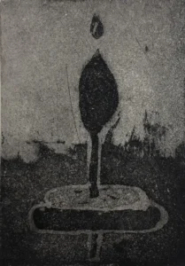 • Cómo grabar líneas sobre barniz duro, y zonas tonales (electrotintas) mediante mordidas controlados de metal desnudo, logrando distintos grises hasta el negro con varias mordidas de diferente duración.