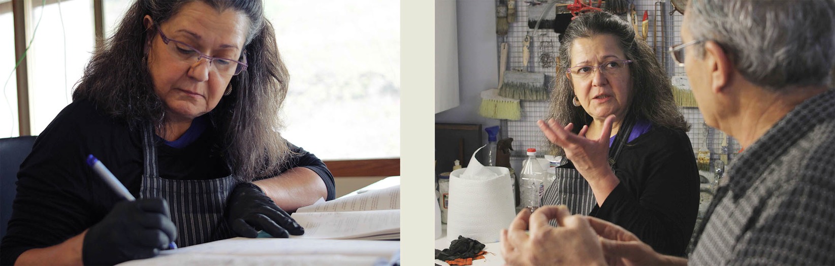 Un día vi sacar de su equipaje tres bonitas limas. Le comenté que no era necesario que trajera sus limas para biselar las planchas porque ya las había en el estudio, ella me respondió sonriente “son mis joyas”. Podía entenderla, verdaderamente sus limas eran preciosas, delicadas y útiles. Siguiendo con su broma le comenté que aquellas eran son joyas y mi estudio la cueva de Alí Babá llena de tesoros que ella podía disfrutar.